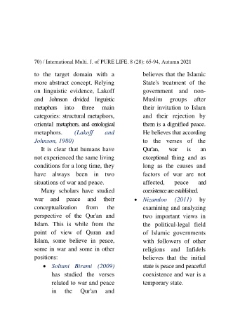 70 International Multi. J. of PURE LIFE. 8 (28): 65-94, Autumn 2021