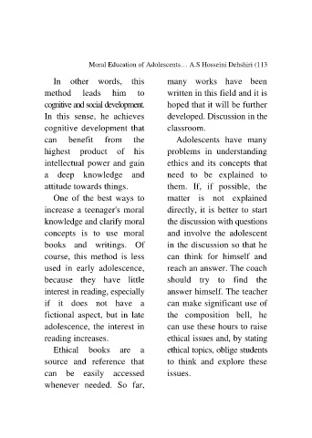 Moral Education of Adolescents… A.S Hosseini Dehshiri (113