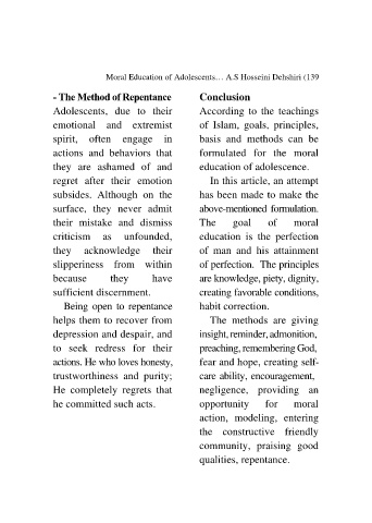 Moral Education of Adolescents… A.S Hosseini Dehshiri (139