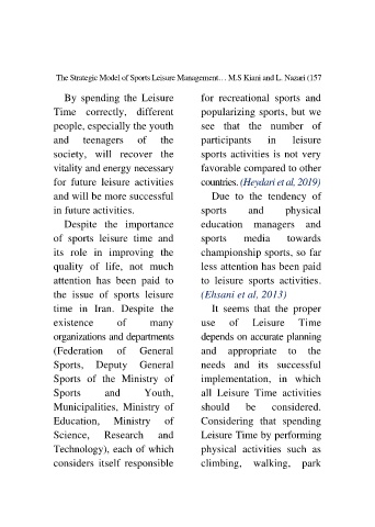 The Strategic Model of Sports Leisure Management… M.S Kiani and L. Nazari (157