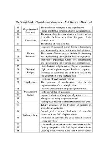 The Strategic Model of Sports Leisure Management… M.S Kiani and L. Nazari (165