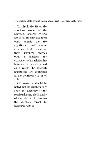 The Strategic Model of Sports Leisure Management… M.S Kiani and L. Nazari (171