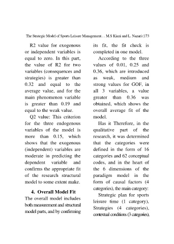 The Strategic Model of Sports Leisure Management… M.S Kiani and L. Nazari (173