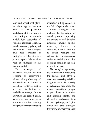 The Strategic Model of Sports Leisure Management… M.S Kiani and L. Nazari (179