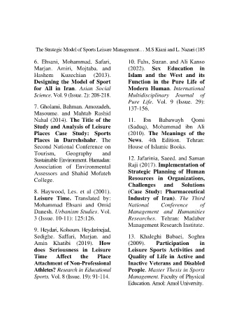 The Strategic Model of Sports Leisure Management… M.S Kiani and L. Nazari (185