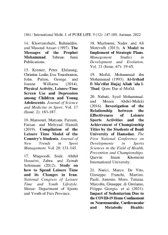 186 International Multi. J. of PURE LIFE. 9 (32): 147-189, Autumn. 2022