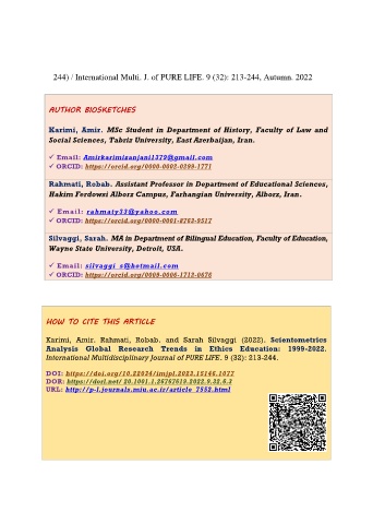 244 International Multi. J. of PURE LIFE. 9 (32): 213-244, Autumn. 2022