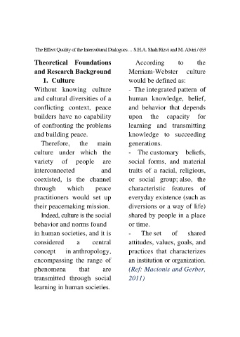 The Effect Quality of the Intercultural Dialogues… S.H.A. Shah Rizvi and M. Alviri / (63