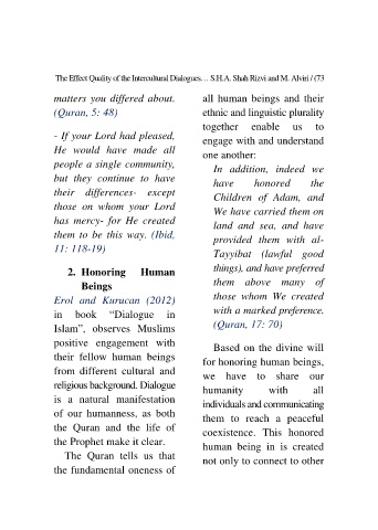 The Effect Quality of the Intercultural Dialogues… S.H.A. Shah Rizvi and M. Alviri / (73
