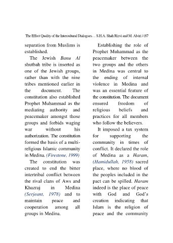 The Effect Quality of the Intercultural Dialogues… S.H.A. Shah Rizvi and M. Alviri / (87