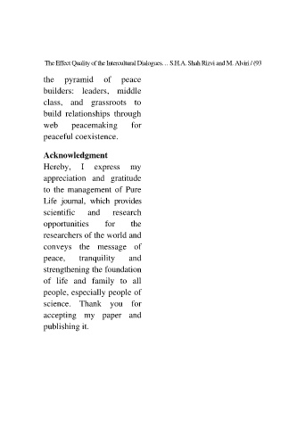 The Effect Quality of the Intercultural Dialogues… S.H.A. Shah Rizvi and M. Alviri / (93