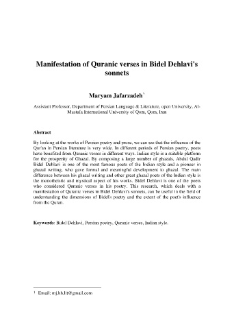 Keywords: Bidel Dehlavi, Persian poetry, Quranic verses, Indian style.