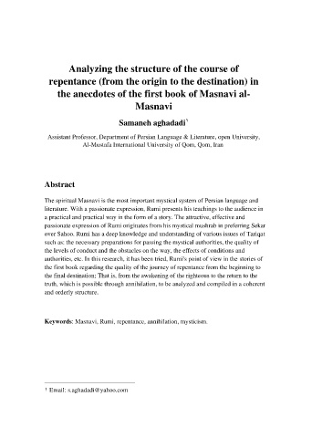 Keywords: Masnavi, Rumi, repentance, annihilation, mysticism.