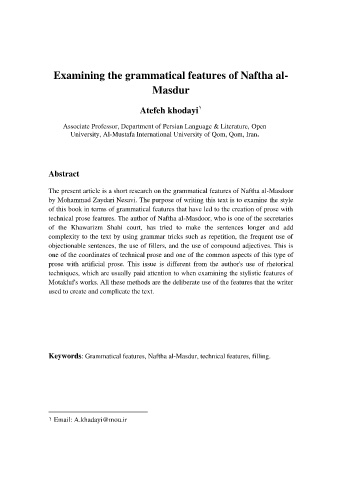 Keywords: Grammatical features, Naftha al-Masdur, technical features, filling.