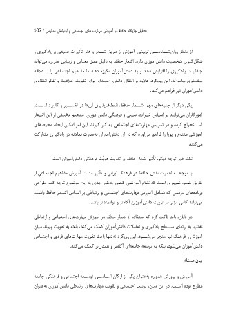 107 / سرادم ی طابترا و ی عامتجا ی اه تراهم شزومآ رد ظفاح هاگیاج لیلحت