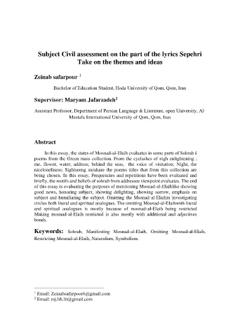 Keywords:  Sohrab,  Manifesting  Mosnad-al-Elaih,  Omitting  Mosnad-al-Elaih,