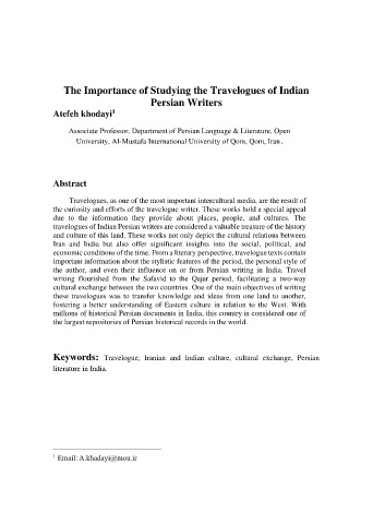 Keywords: Travelogue, Iranian and Indian culture, cultural exchange, Persian