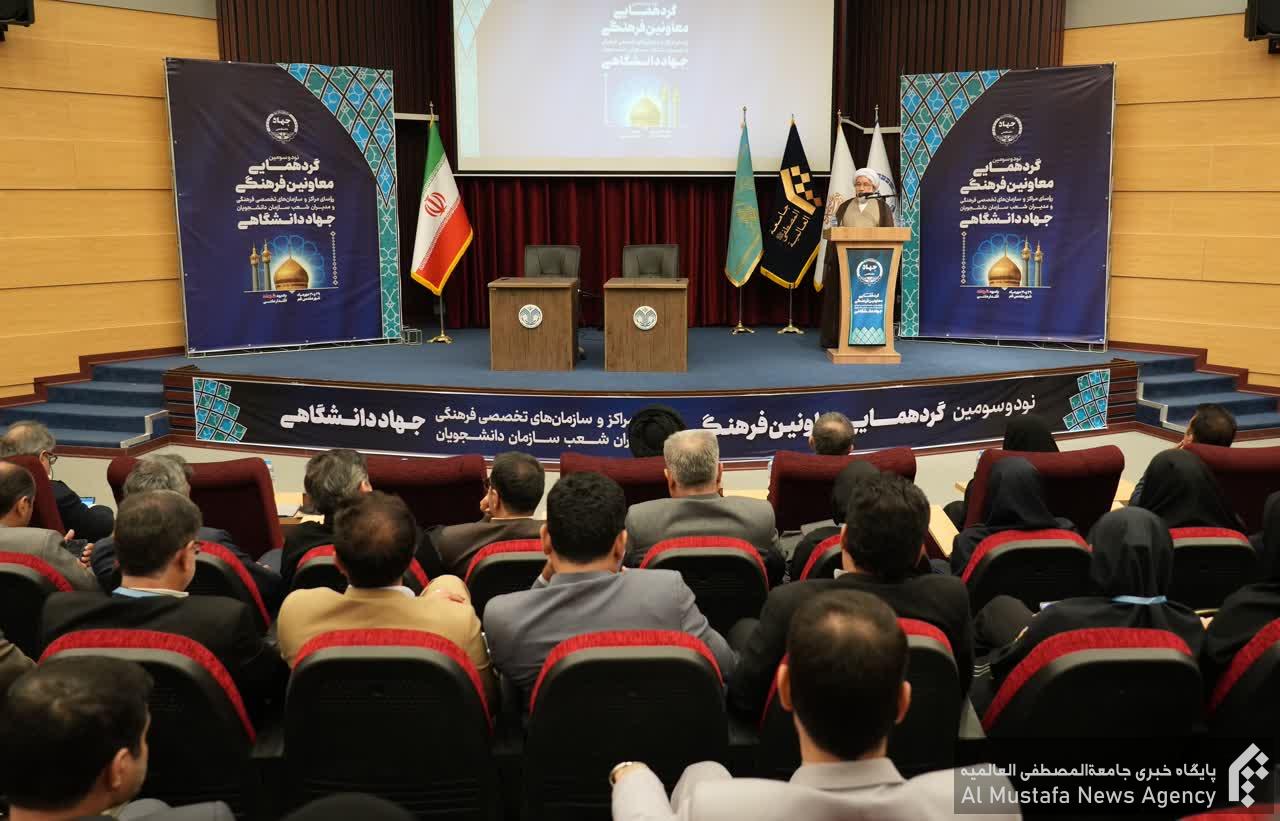 نود و سومین گردهمایی معاونین فرهنگی روسای مراکز و سازمان های تخصصی فرهنگی و مدیران شعب سازمان دانشجویان جهاد دانشگاهی با سخنرانی رئیس جامعةالمصطفی در دانشگاه قم و نیز امضای تفاهم نامه همکاری مشترک برگزار شد.