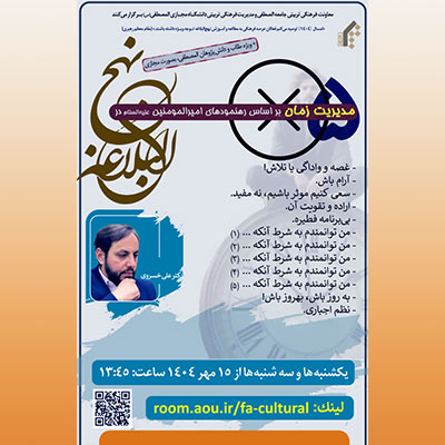 دوره آموزشی تربیتی با موضوع: مدیریت زمان بر اساس رهنمودهای حضرت امیرالمومنین علی علیه‌السلام در نهج‌البلاغه