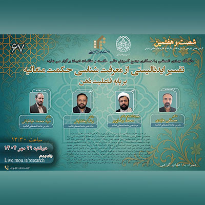 شصت و هفتمین کرسی علمی ترویجی با عنوان: تفسیر ایدئالیستی از معرفت شناسی حکمت متعالیه بر پایه فاعلیت ذهن