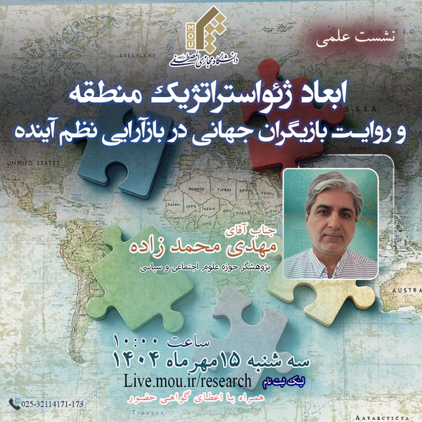 نشست علمی پژوهشی با عنوان: ابعاد ژئواستراتژیک منطقه و روایت بازیگران جهانی در بازآرایی نظم آینده