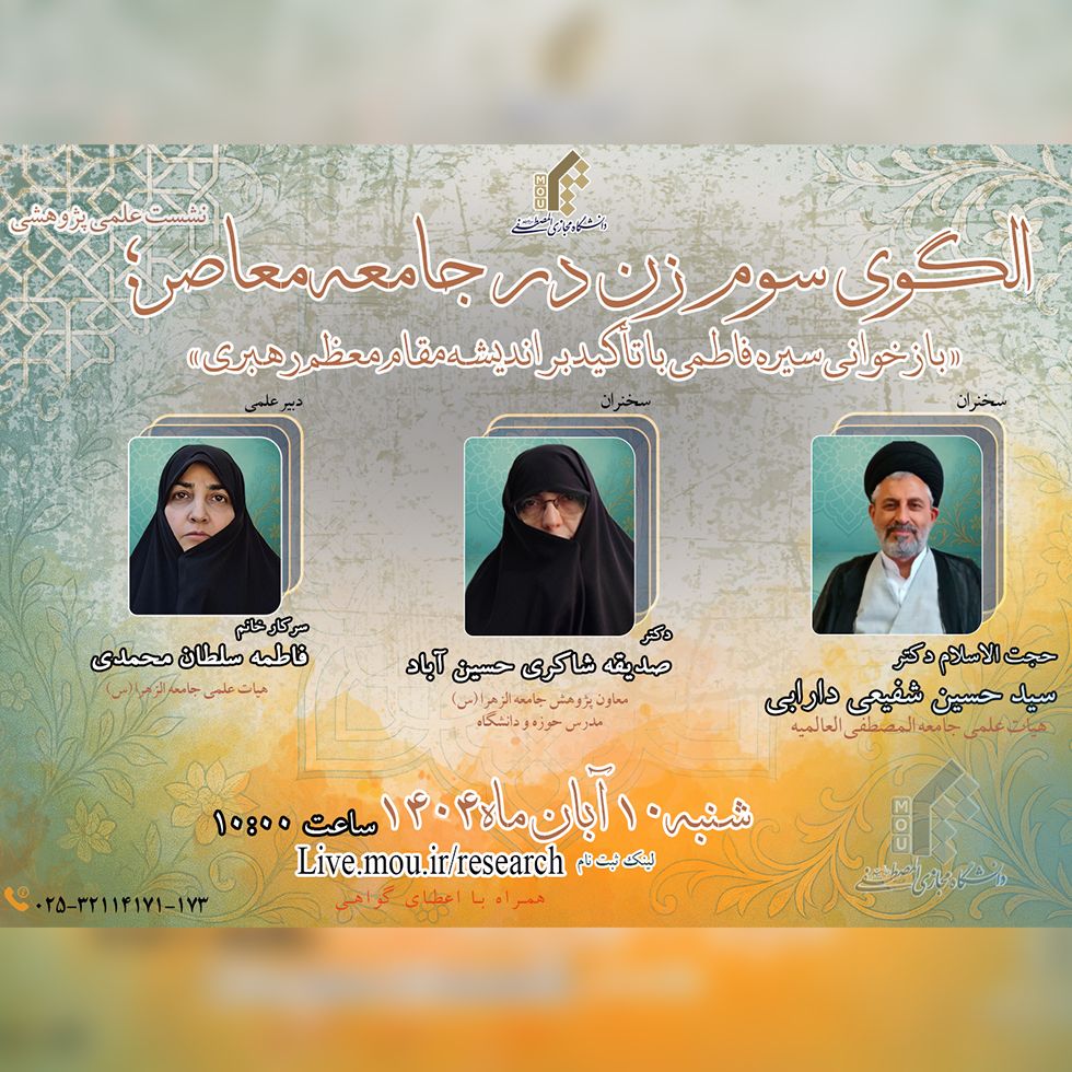 نشست علمی پژوهشی با عنوان: الگوی سوم زن در جامعه معاصر؛ بازخوانی سیره فاطمی با تأکید بر اندیشه مقام معظم رهبری
